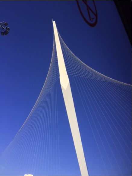 Designed by the renowned Spanish architect Santiago Calatrava, the bridge is marked by a 119-meter high mast with 66 steel cables arranged in a parabolic shape, resembling both a tent in the desert and a harp. But Calatrava also was influenced by what he said is the Latin origin of the word “religious,” stemming from re-ligare, meaning “to create a link.” Fittingly, thus, the light rail line that travels across the bridge connects both parts of that contentious city, winding through both Jewish and Muslim neighborhoods.
