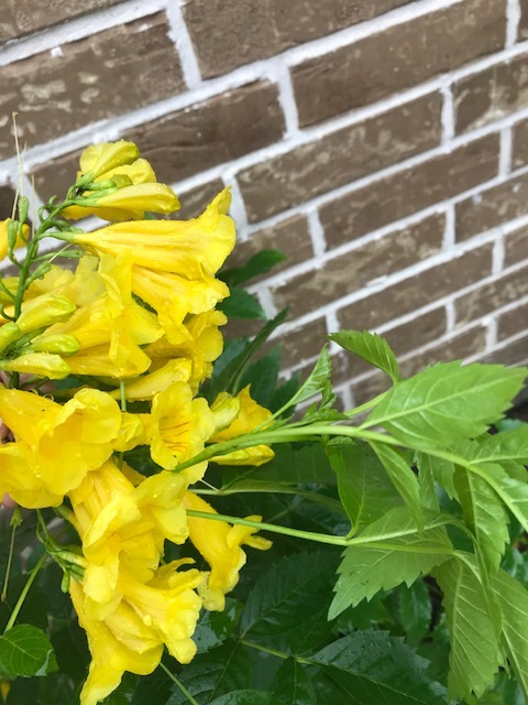 We planted two of those bushes by our west wall and so far they are not only doing well in their new environs, but they continue to bloom. Formally, they are known as tecoma stans, but they answer to many other names, as well, including yellow bells and hardy yellow trumpets. The nursery called them gold star esperanzas, however, and that’s part of why we bought them. For in Spanish, of course, “esperanza” means simply “hope” or “expectation.”